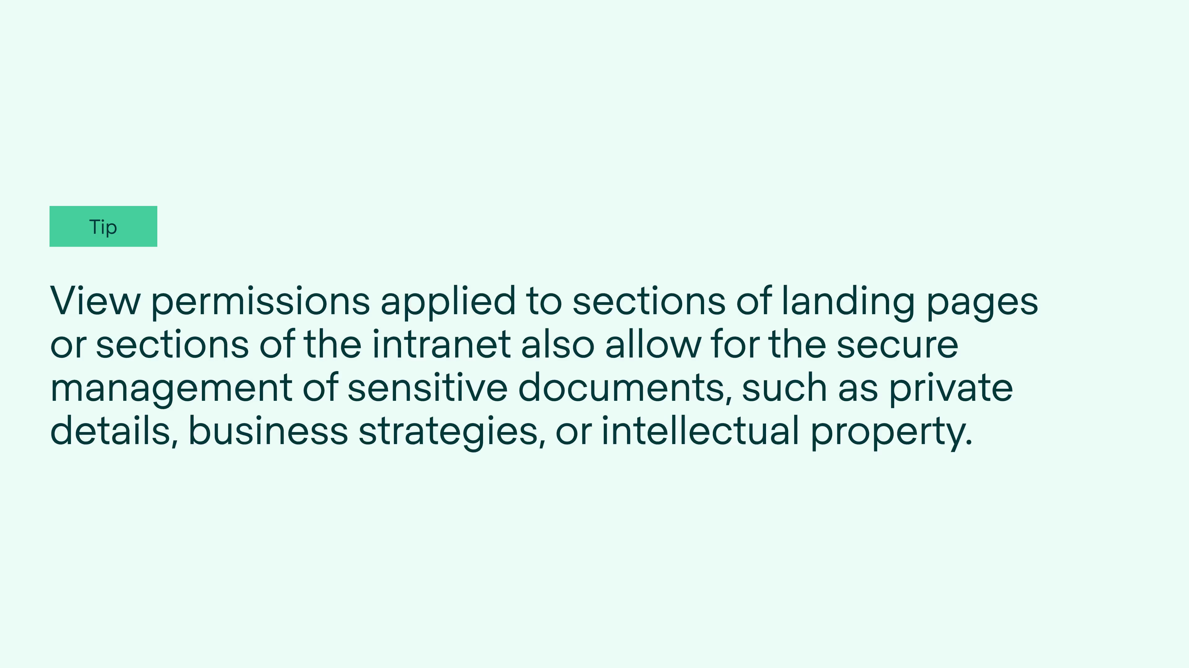 Confluence intranet managers can apply permissions on landing pages to highlight and contextualize relevant content for employees. View permissions can be applied to sections and rows containing a variety of modules, so that employee groups see only what you want them to see.