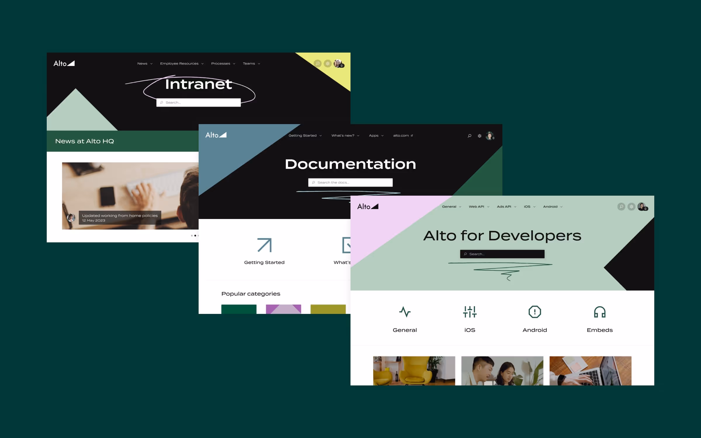 In the examples below, Alto applied a light, muted green as a complement to the bolder greens and pinks in the hero section.