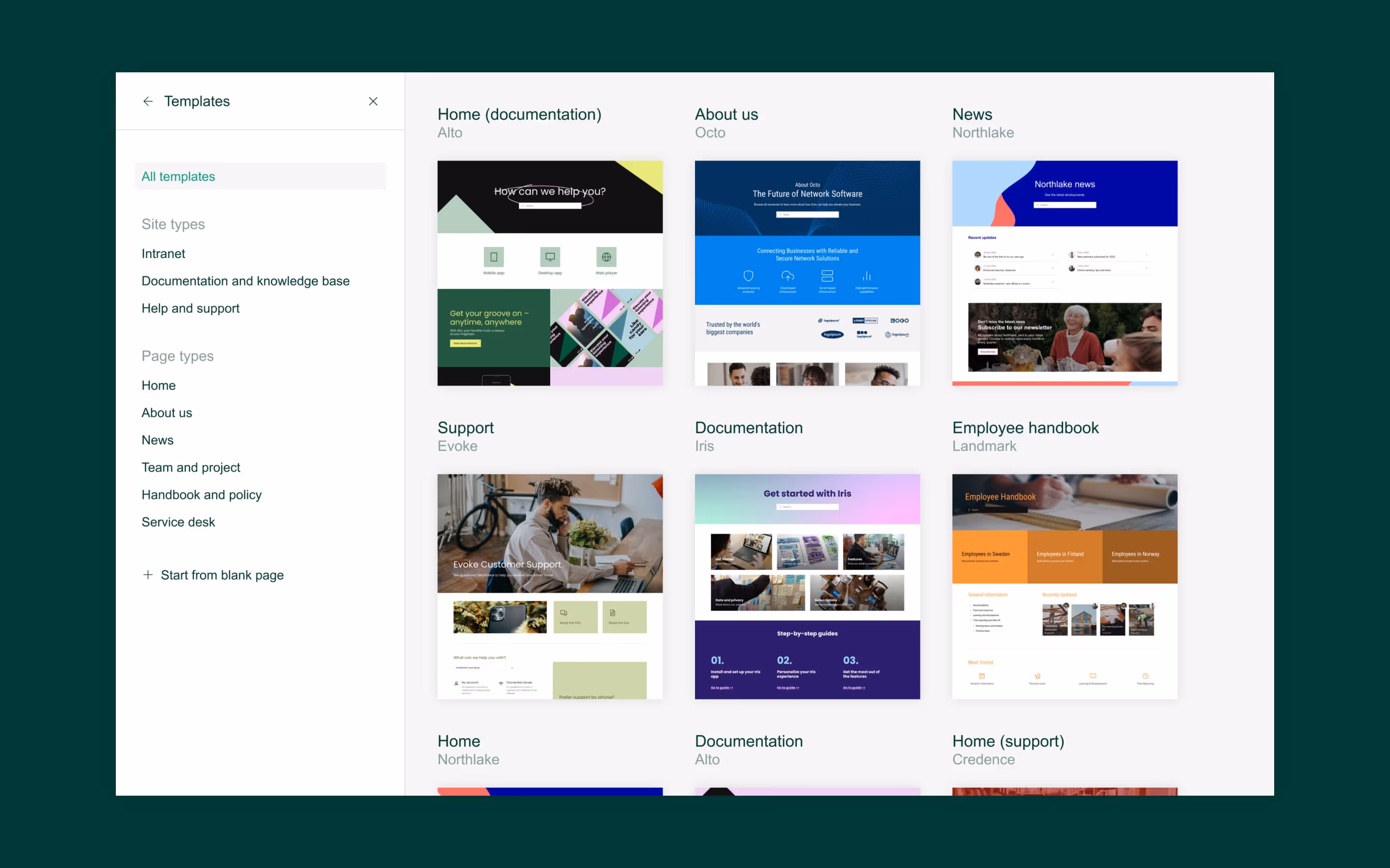 Templates are available for these types of sites and landing pages below. Note that some are only available with Refined Sites for Confluence, and others are only available with Refined for Jira Service Management.