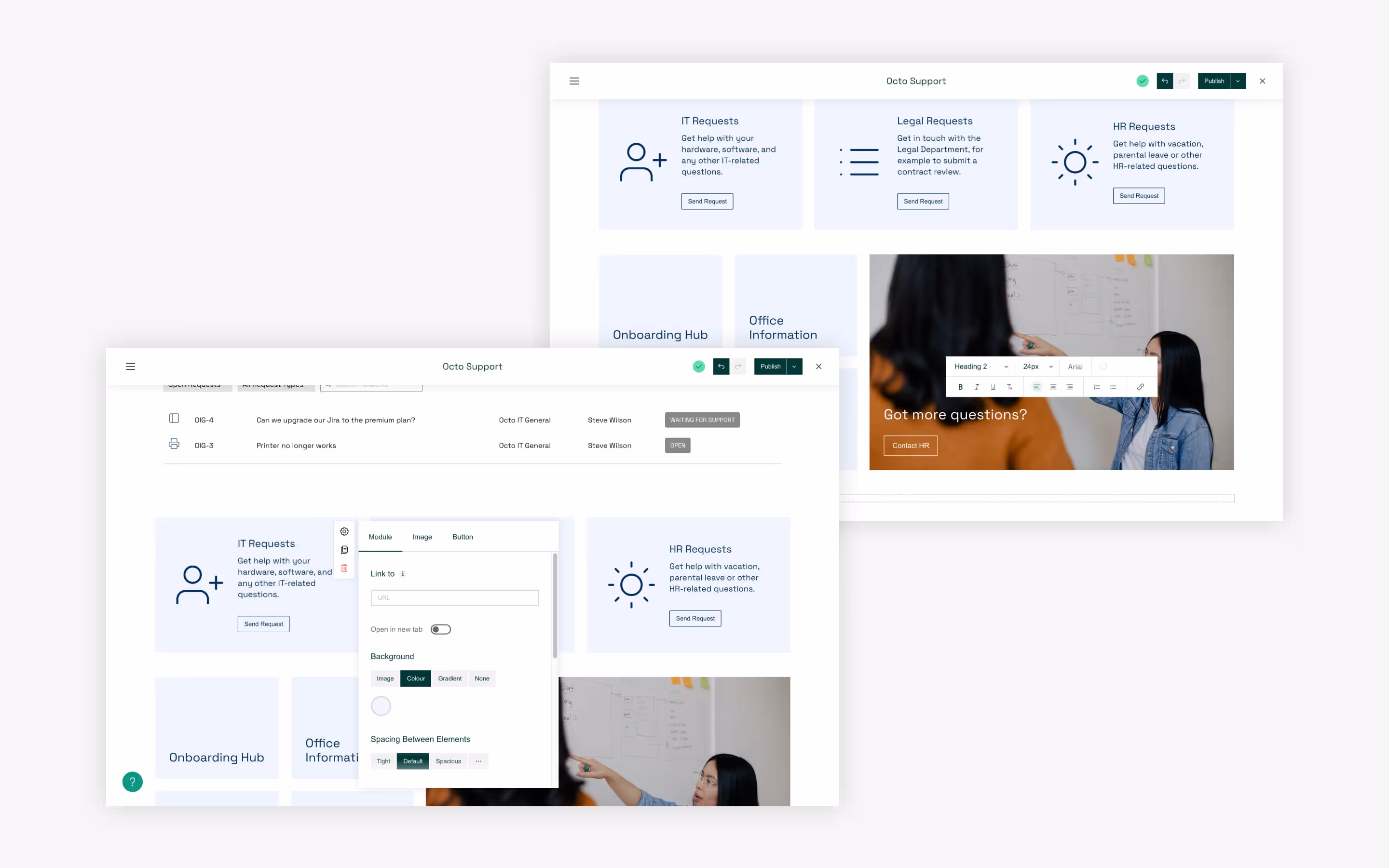 On Cloud, you get to build as many sites, public or private, as needed — all from the same Confluence and JSM instances. That way, you can build customized sites for every use case that your organization has, without the hassle of setting up a myriad of Confluence and JSM instances. Explore common Refined use cases here.
